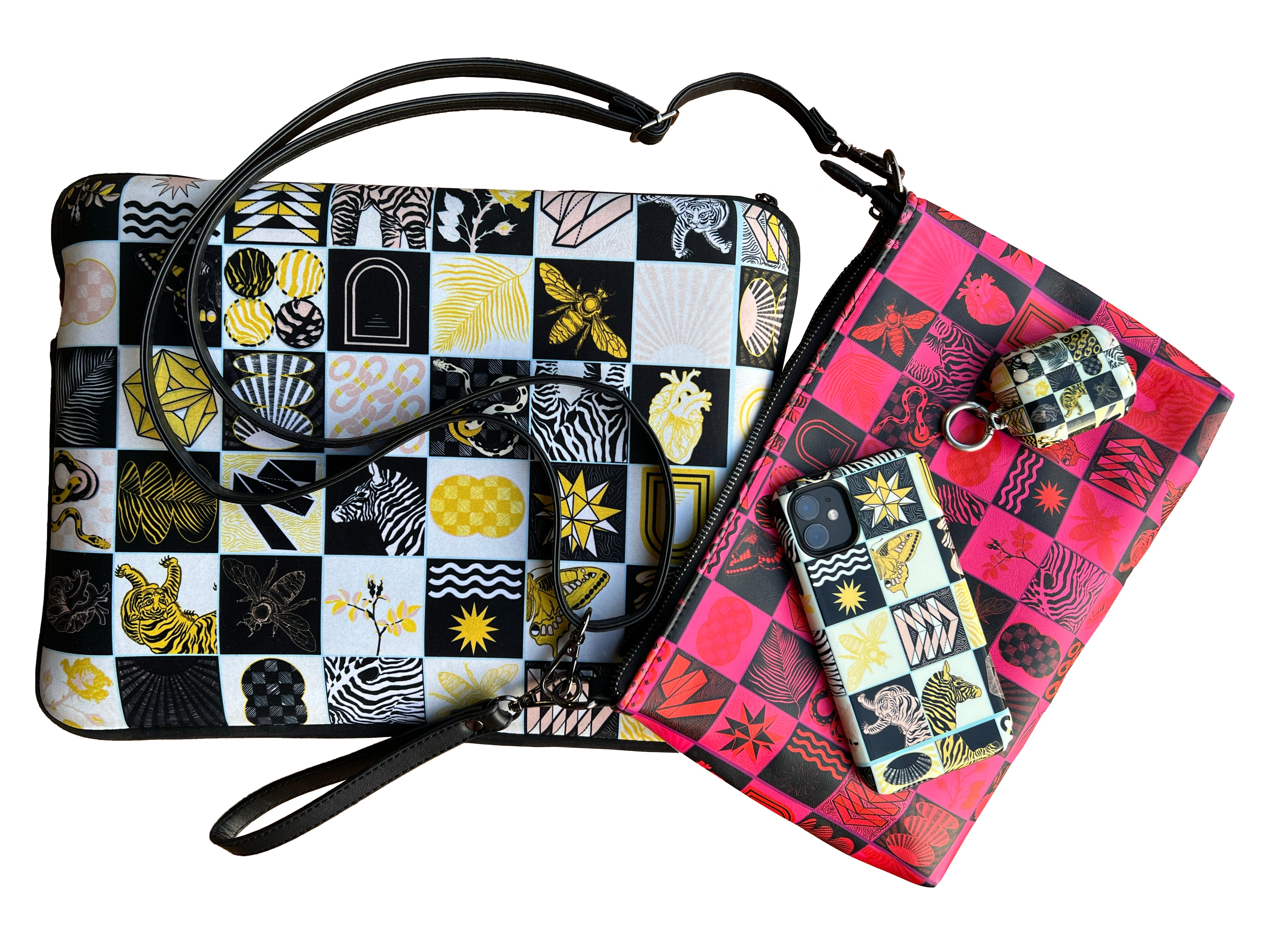 Keep the colors in full bloom this winter! Featuring Femme & Unisex styles in Scarves, Jackets, Kimonos, Bags & much more . . .