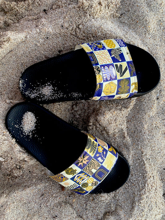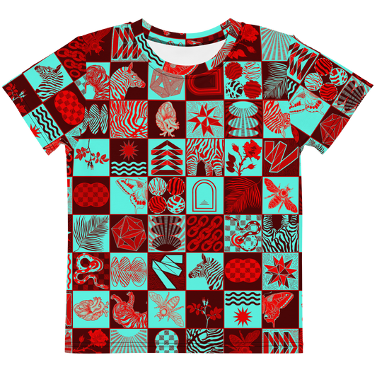 Play chess not checkers . . . this print is a twist on the classic checkerboard print that never gets boring with every square featuring a different design from abstract sun rays to zebras to anatomical hearts.