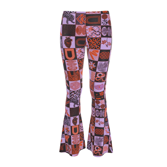 Chessboard Print Crushed Velour Flare Pants