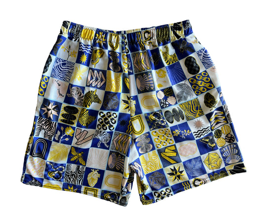 Chessboard Print Recycled Mesh Unisex Shorts