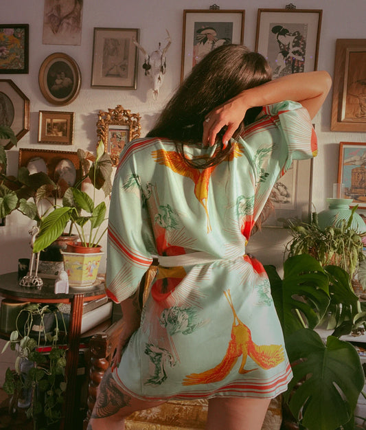 Crane Egret Sunburst Silk Kimono