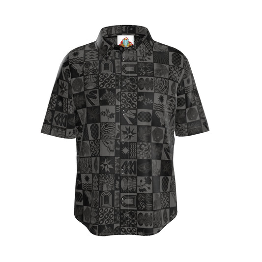 Chessboard Print Silk Button Down Shirt
