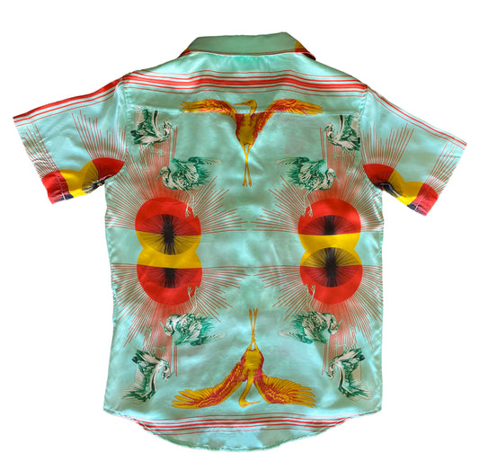 Crane Egret Sunburst Silk Button Down Shirt